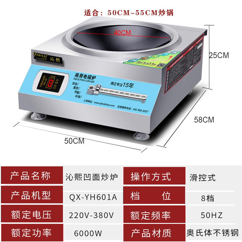 Qinxi High Power Commercial Induction Cooktop 5000w Concave hotel Fried Vegetable Stove Hotel Kitchen Equipment electric frying oven 6KW