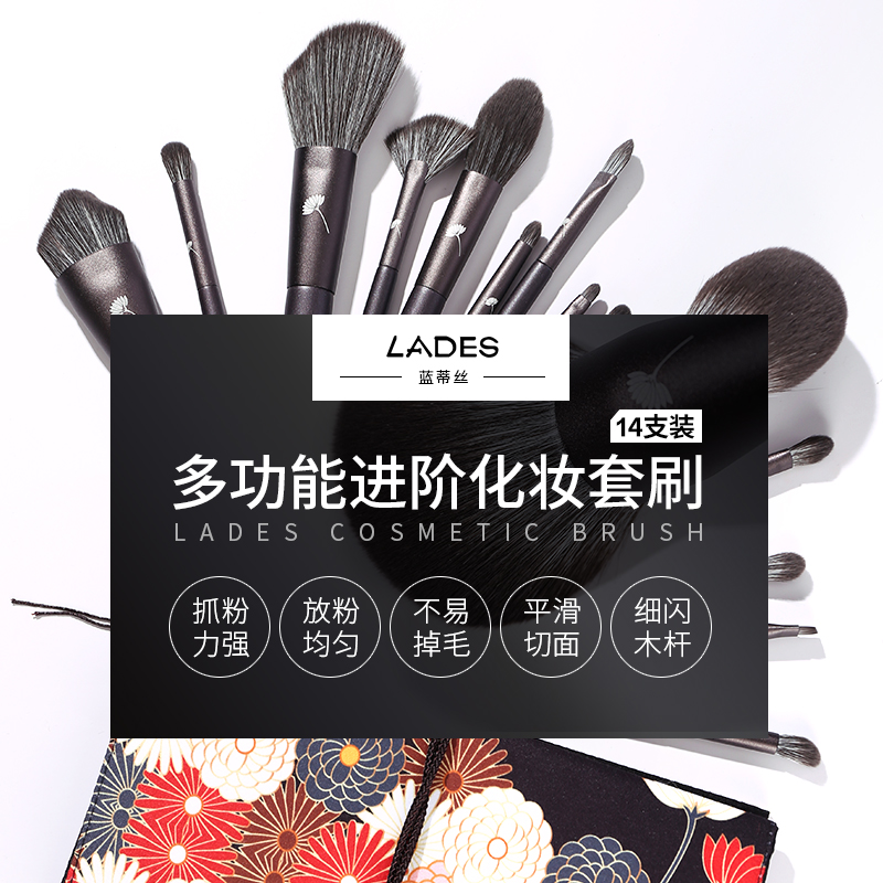Senem joint Sam LADES Blue Lace Flowers See 14-11 Makeup Brush Sets Scattered Pink Eye Shadow
