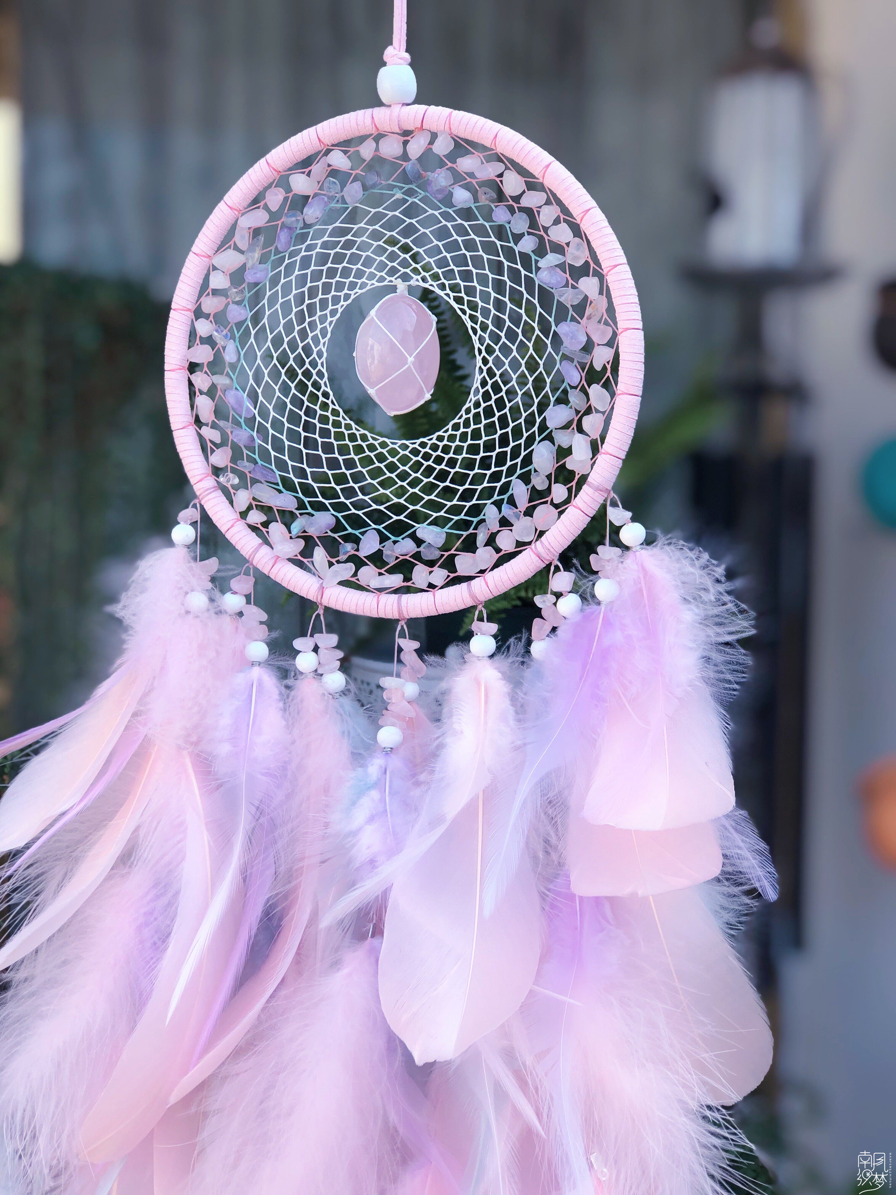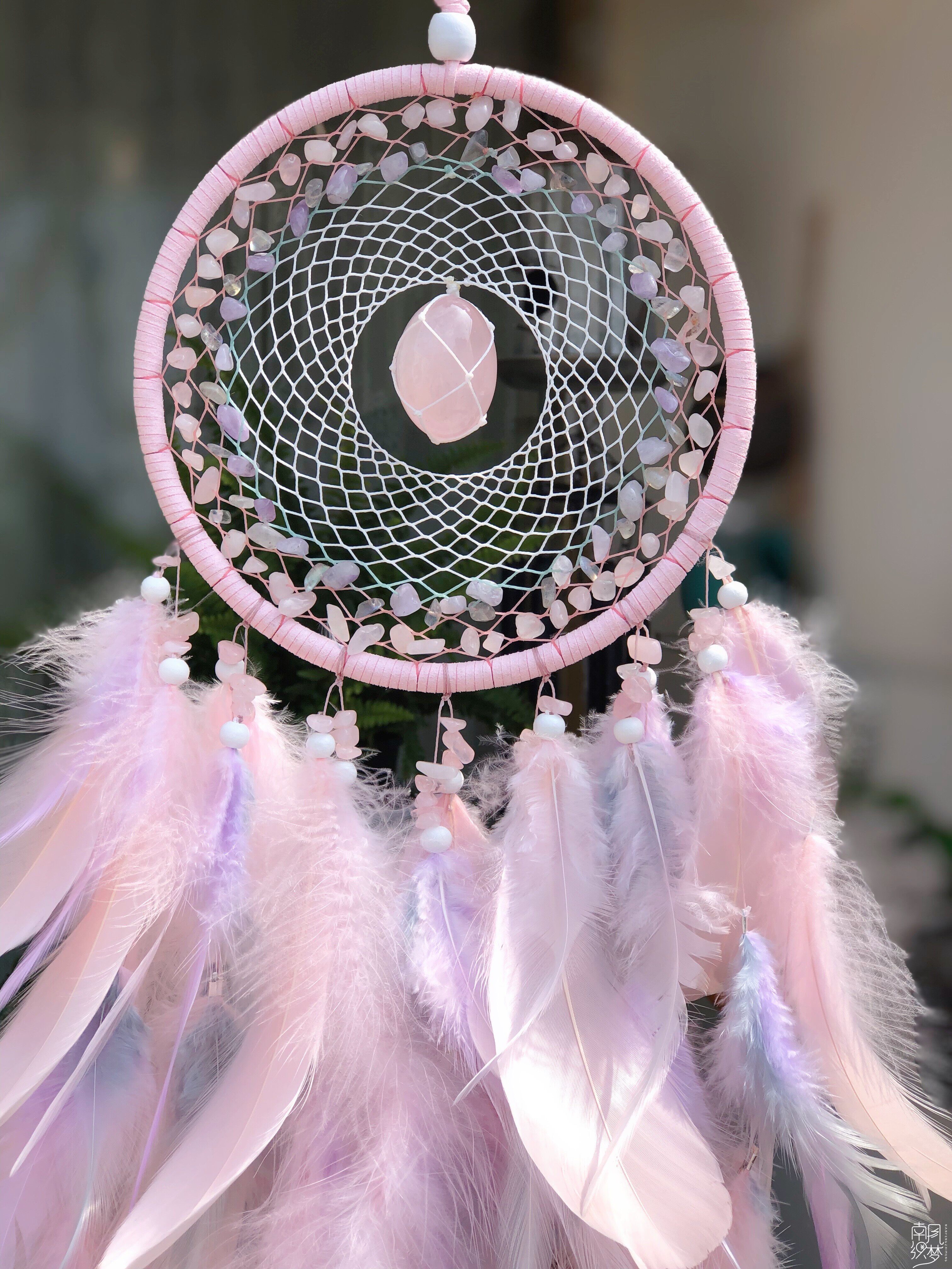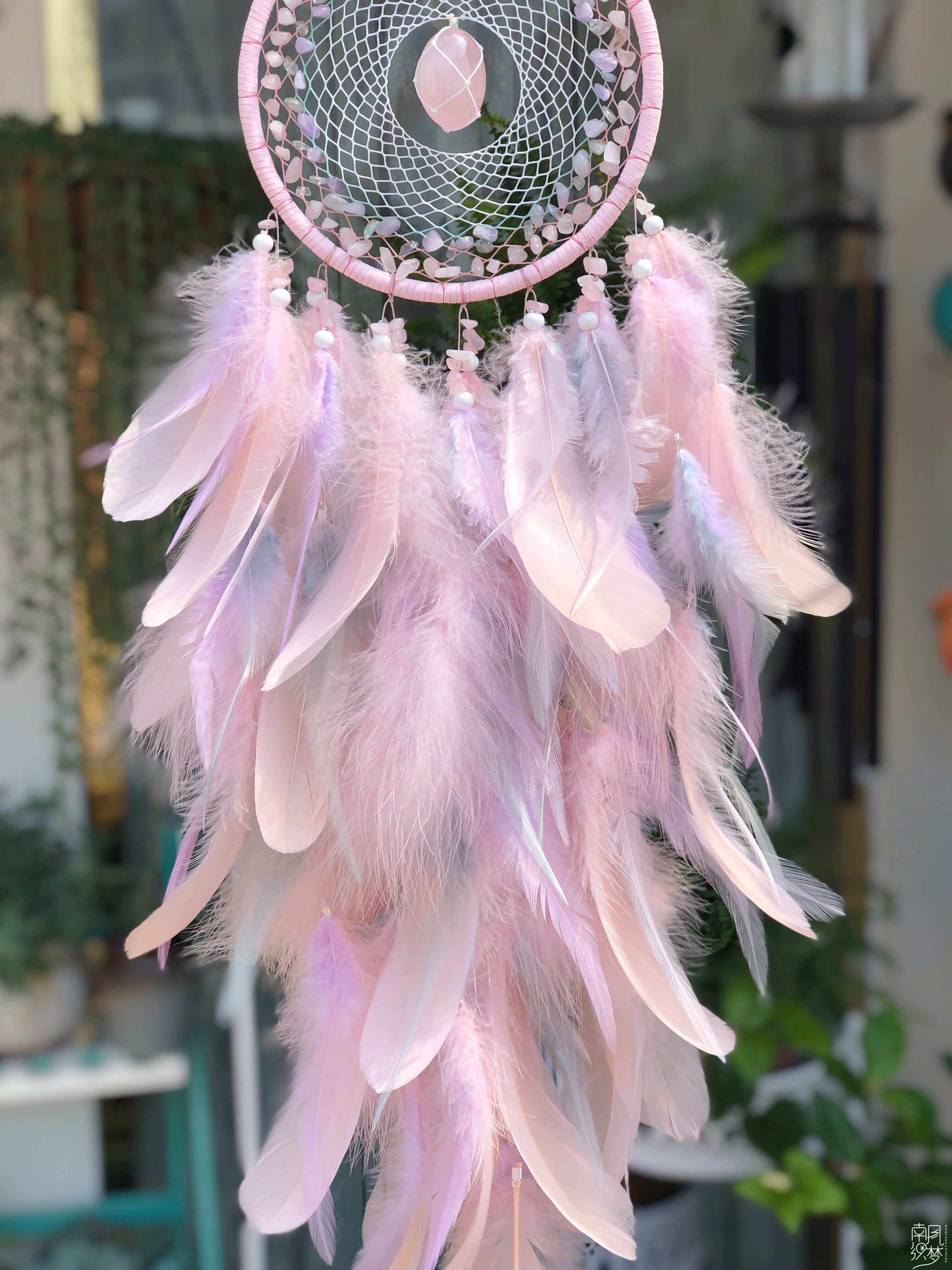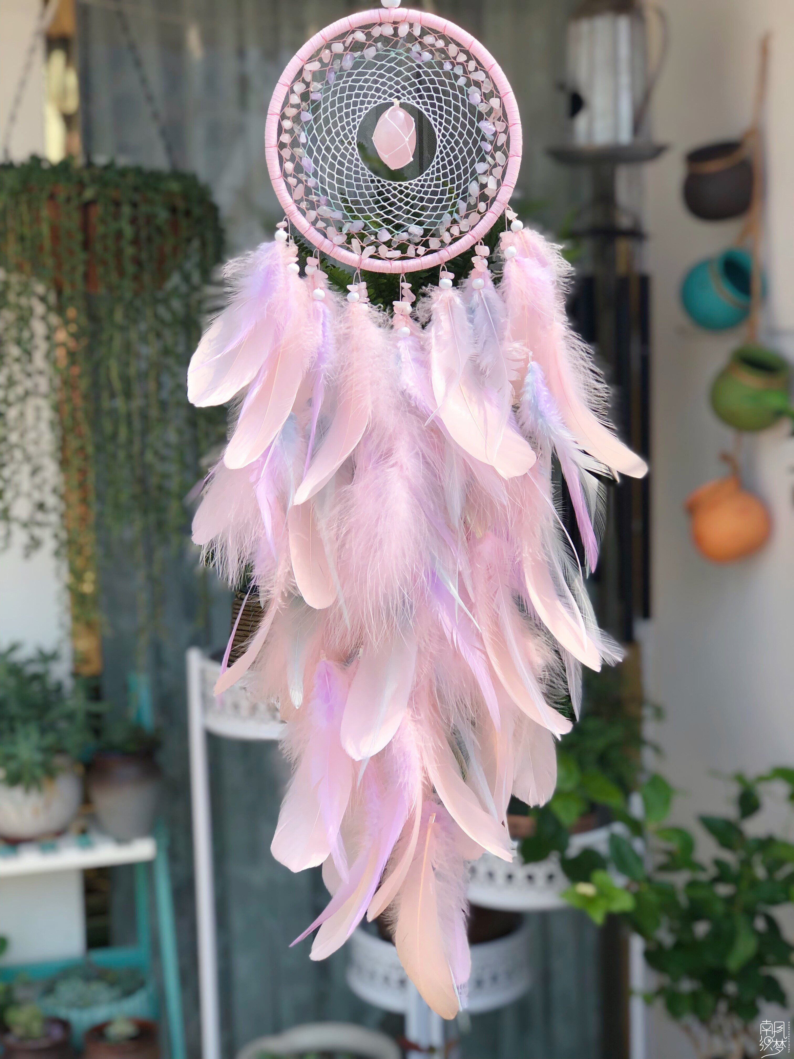 South Wind Weaving Dream Original Floral Powder Crystal Peach Blossom Stone Trapeze Dream Net Custom Gift Pendant Feather Wind Bells