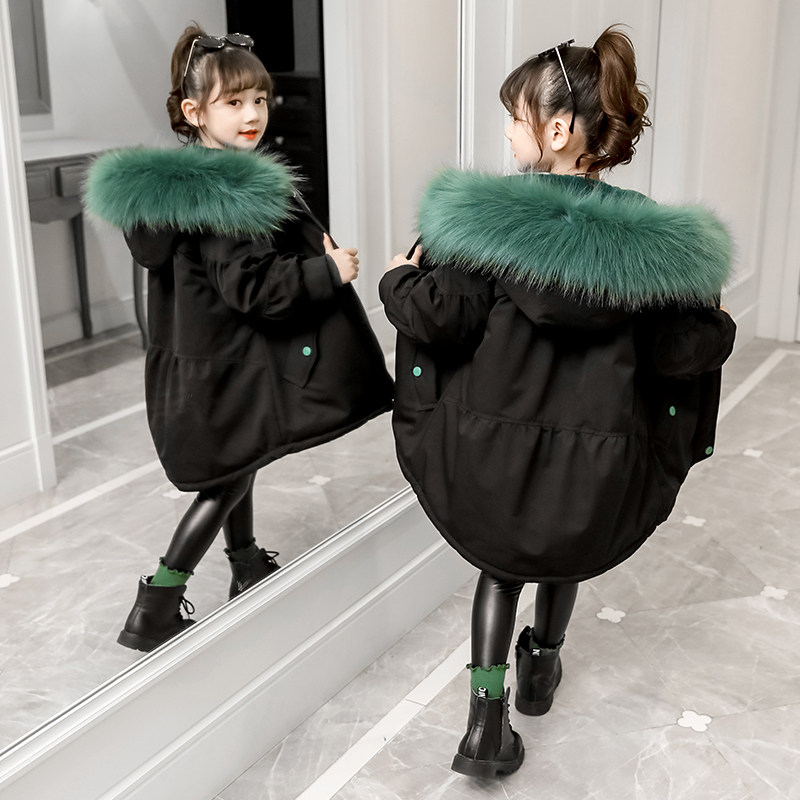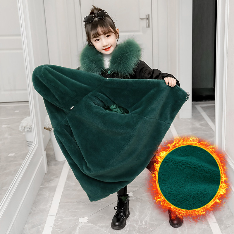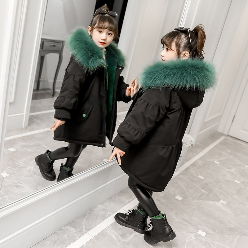 Girls' winter clothing pie overcomes cotton-padded clothes children's foreign style imitation fur Rex rabbit fur removable liner mid-length jacket tide