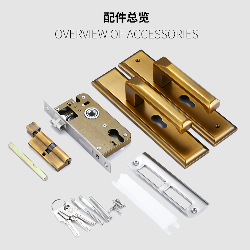 ChCantonese Room Door Lock Home Lock Solid Wood Golden Bedroom Door Lock Room Silent European-style Magnetic Attraction Universal