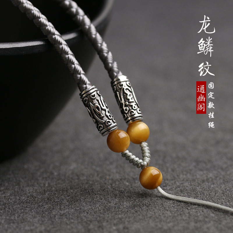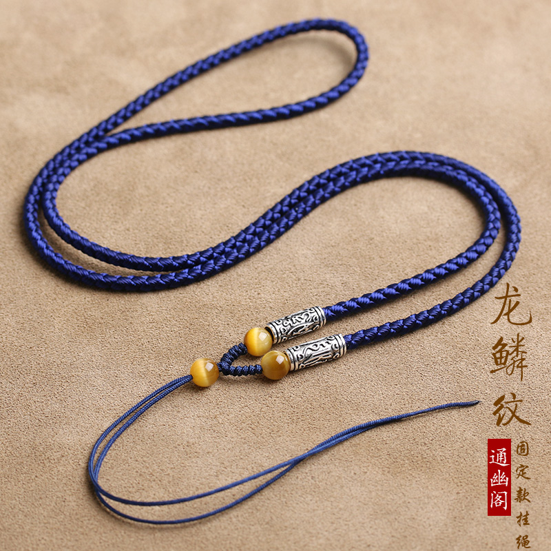 Tong You Ge Dragon scale pattern 3 5mm thick rope necklace lanyard Jade pendant Jade brand male silver gray pendant with rope
