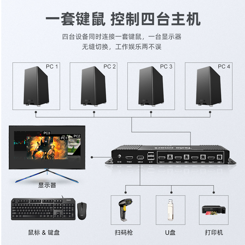 Tesla Tesla TV pull kvm switch 4-port hdmi seamless usb2 0 switch 4-in 1 out with PIP HD 4K
