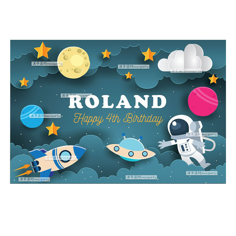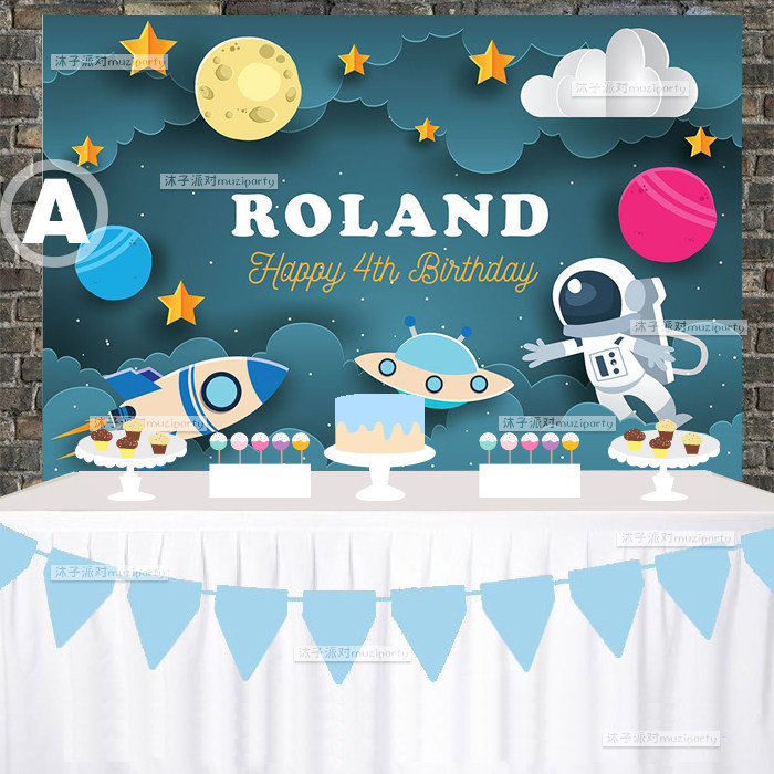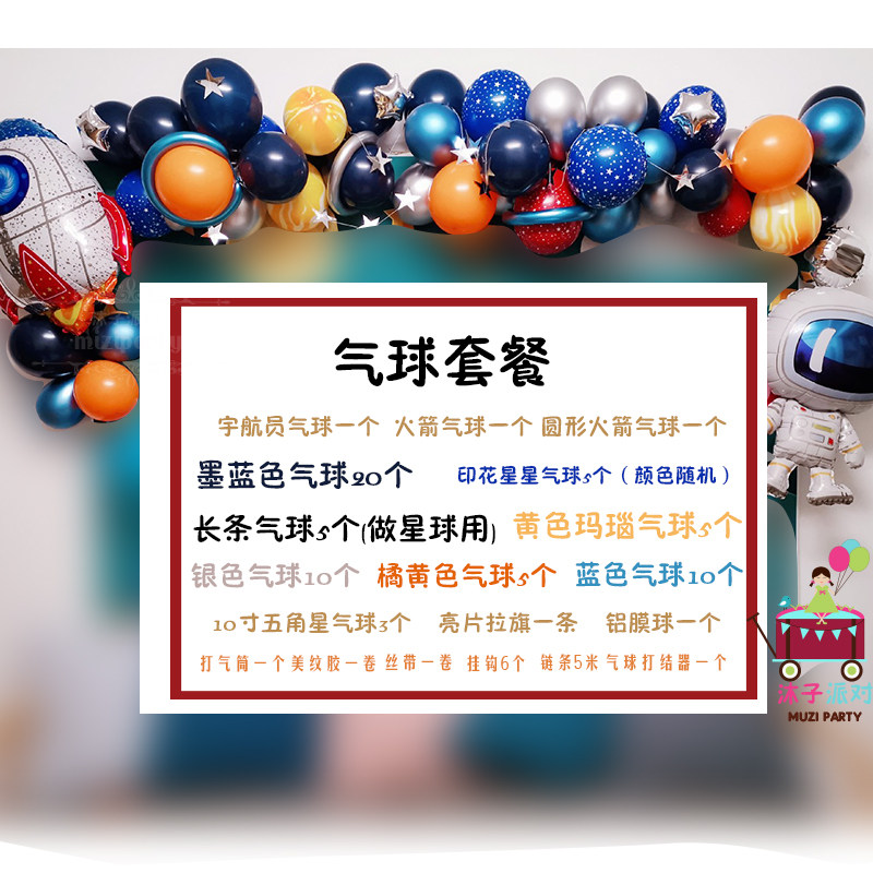 Space birthday poster Astronaut planet theme Children's birthday baby feast Decoration arrangement background balloon package
