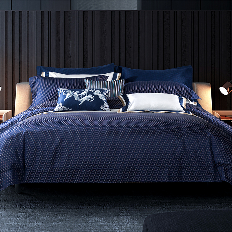 New Products Home Upscale Minimalist Color Weave Jacquard Pure Cotton Four Pieces Style 140S Villa Blue Long Suede Cotton Bed Accessories