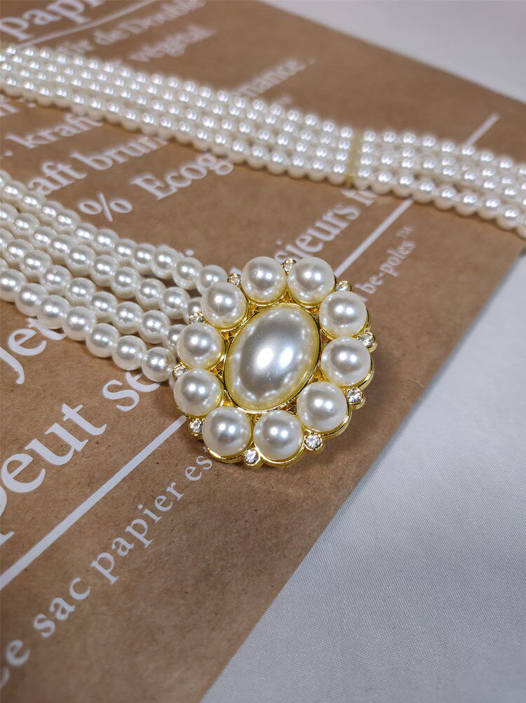 Pearl Oval Buckle Pearl Belt water drill Oval Buckle Pearl Belt pearl Pearl Flowers Buckle Pearl Belt Water Drill Flowers Button Pearl Girdle