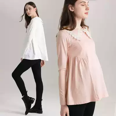 Pregnant women's T-shirt female cotton long version of lace collar loose size age age maternity wear out pregnant women's coat autumn