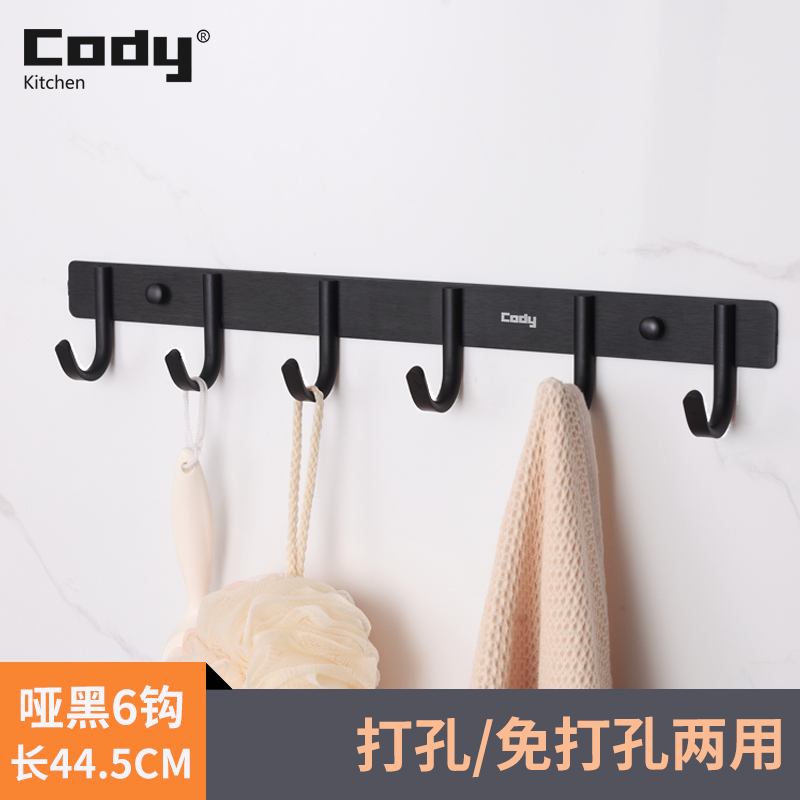 Space aluminum free punch hook wall hanging hanger kitchen bathroom door behind the wall clothes towel fitting room hanging hook