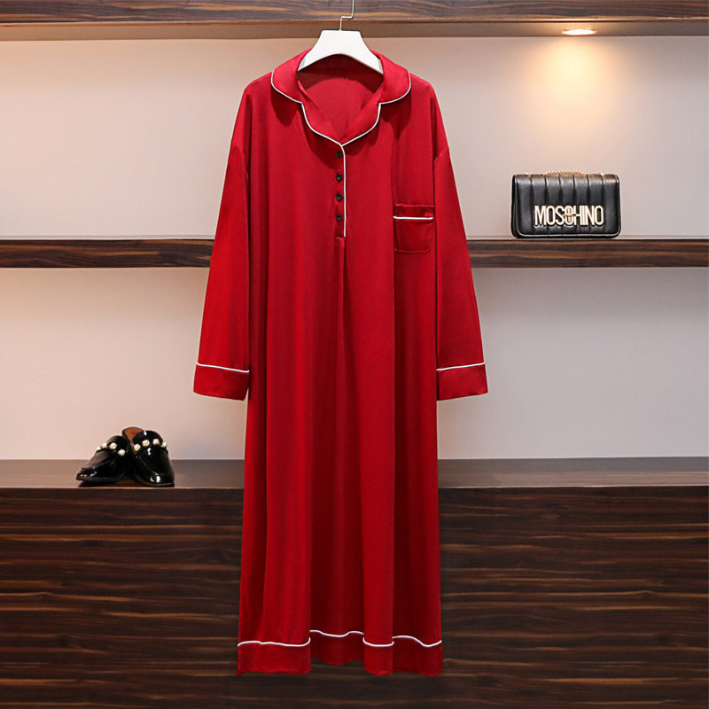 Add Fat Yard Sleeping Dress Woman 200 Catty Spring Autumn Long Sleeve Fat MM Pajamas Modale Pure Cotton Long Version Summer Pregnant Woman