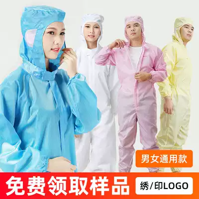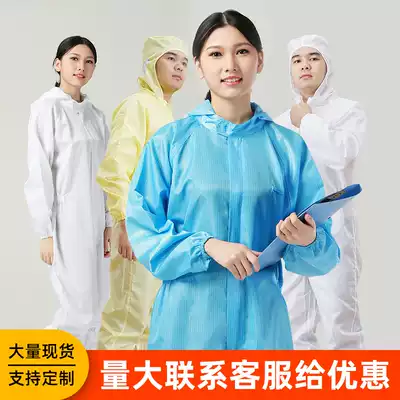 Electrostatic clothing dust-proof clothing overalls blue white men and women long version of the electronic factory electrostatic clothing dust-free clothing jumpsuit hooded