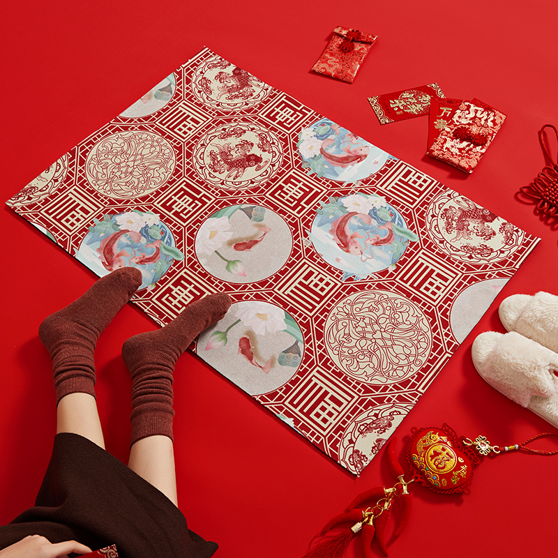 2022 New Year Ground Mat Tiger Year Into Door Brocade Carp Footbed Home Doormat Gate Entrance Door door Hall Slip Mat