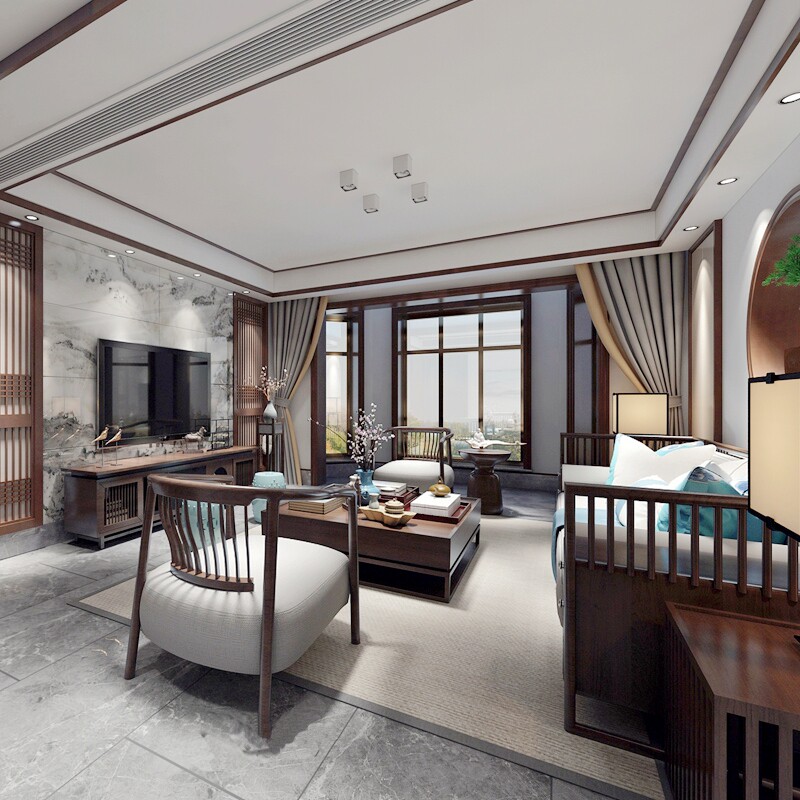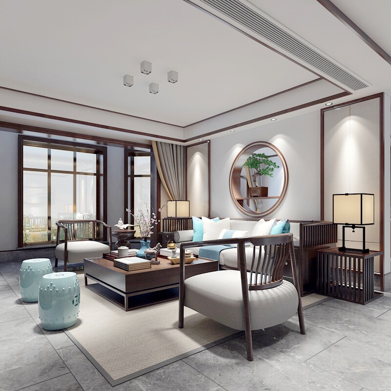 New Chinese solid wood sofa Modern Villa-Like style Sofa Combination Simple small-family-style Living room furniture Customized