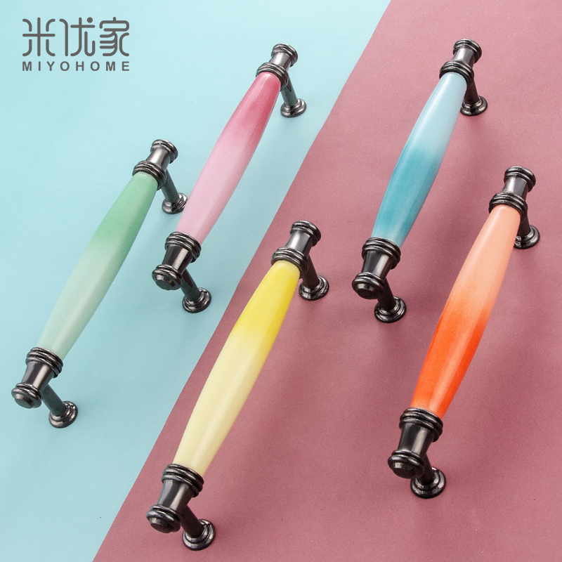 Miujia Pink Drawer Wardrobe Children's Room Handle Mediterranean Blue Ceramic Cabinet Door Brief Overall Cabinet Handle