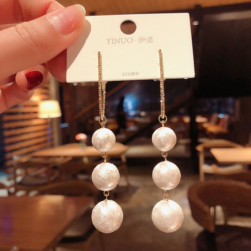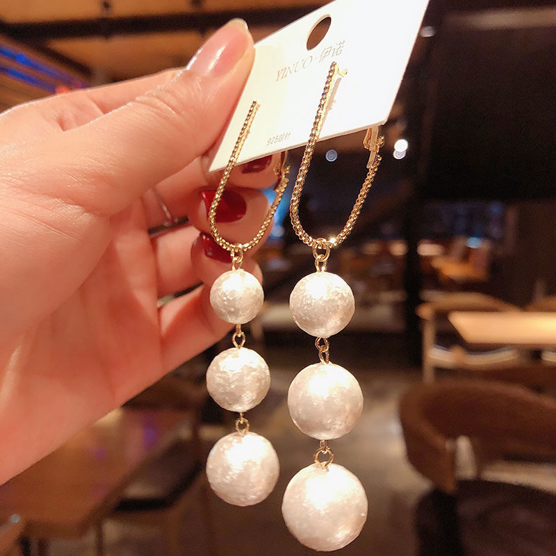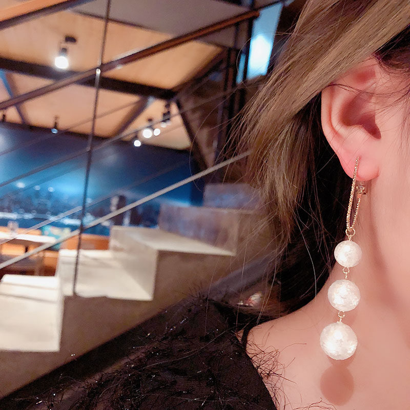 South Korea's Dongdaemun fashion big-name design sense long big pearl earrings exaggerated temperament show face thin silver needle earrings