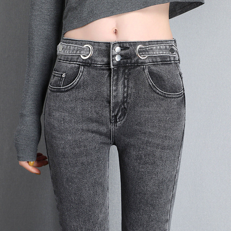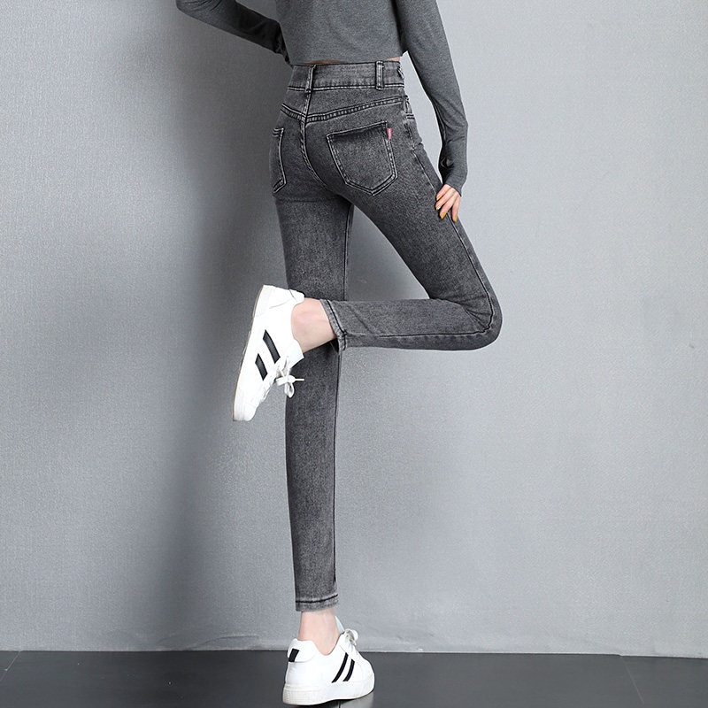 High-waisted jeans women's nine pants spring and autumn 2020 new Korean version of thin and high-play tight little feet pants