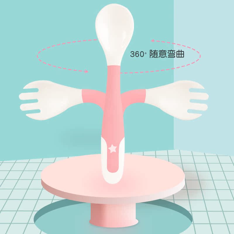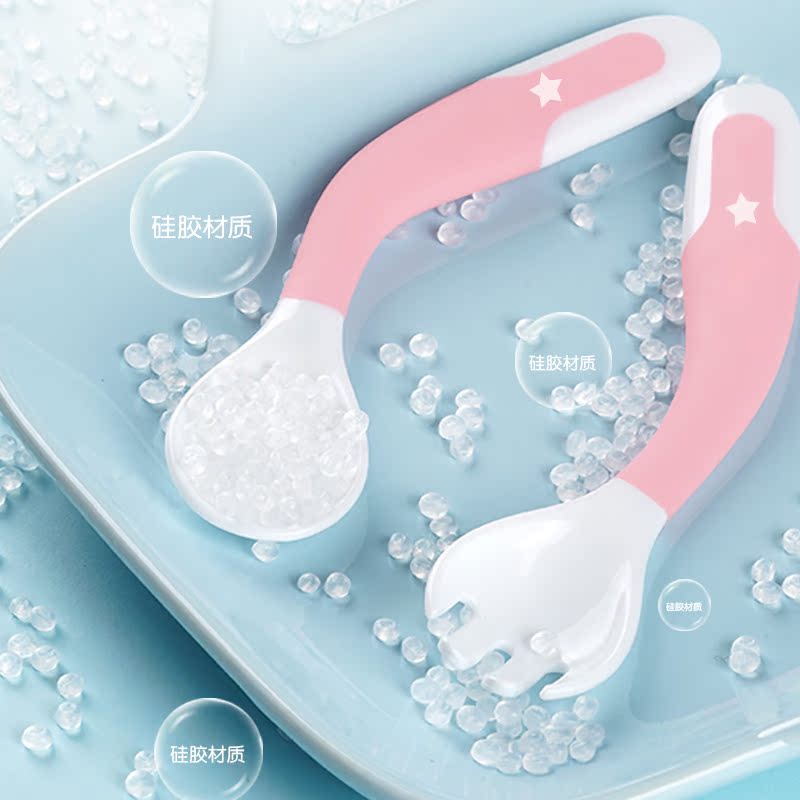 Baby spoon baby learning to eat training fork spoon set newborn children's tableware non-staple food bowl elbow twist soft spoon