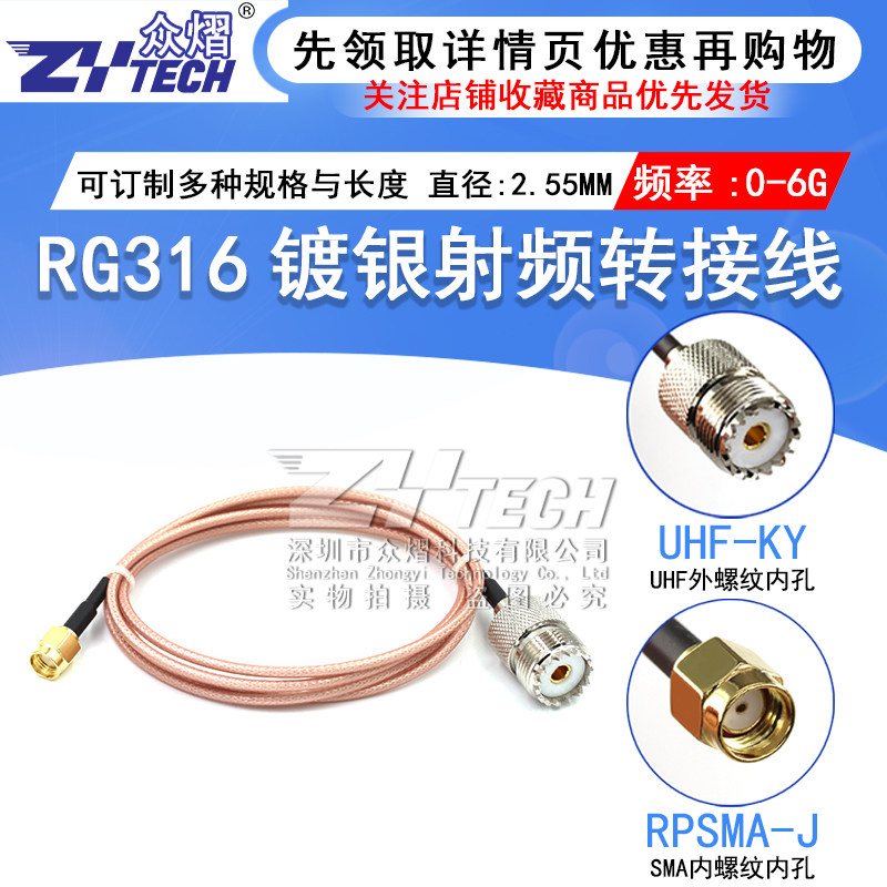 RG316 RF all-copper low-loss SMA male to UHF female head inner screw inner needle hole outer screw inner hole needle