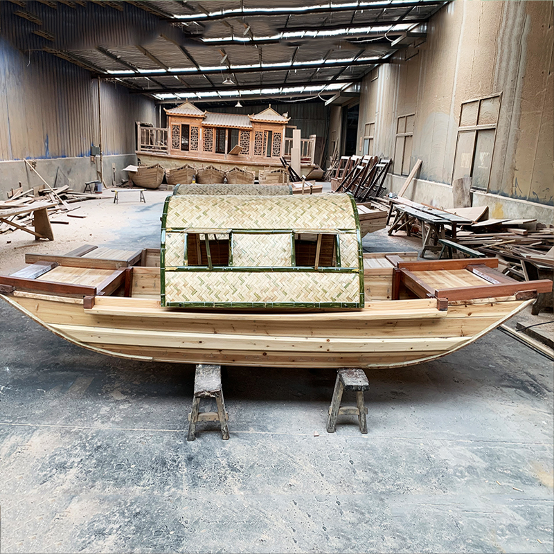 Handmade Custom Jiangnan featured antique decoration Ucanopy ship Wooden Boat Catering Dining Room Landscape Prop boat handmade