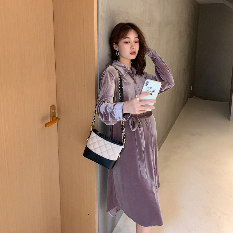 2022 Spring and autumn new gestation Women in Korean version button Lactation Lactation-Laced Shirt-Style Foreign Dress