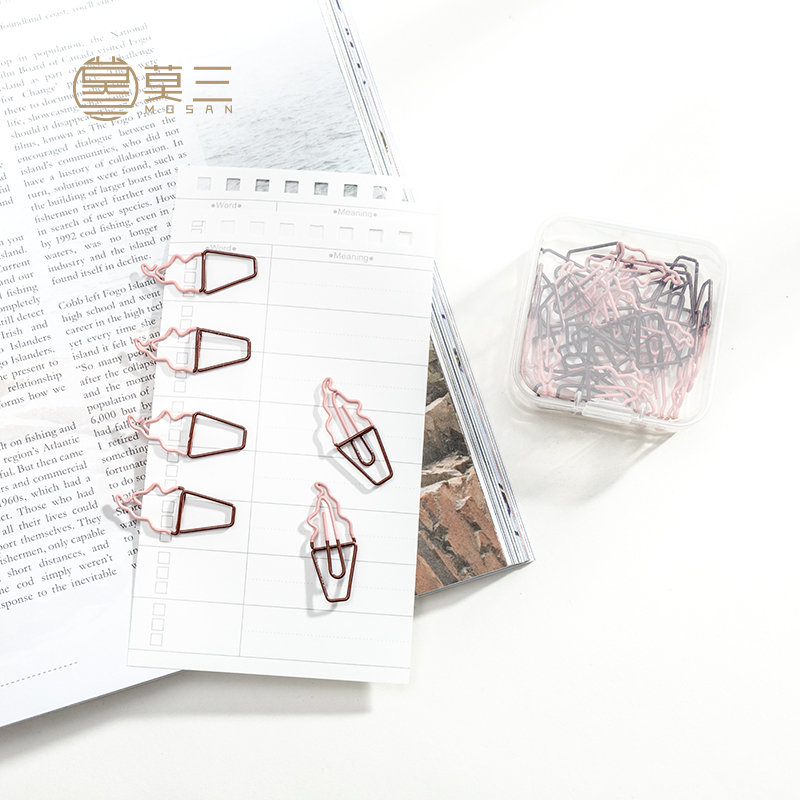 Mosan Stationery Ice Cream Colored Metal Paper Clips Boxed Geometric Modeling Korean Version Special-shaped Multifunctional Bookmarks Small Fresh Girl Cute Paper Clips 24 Pieces