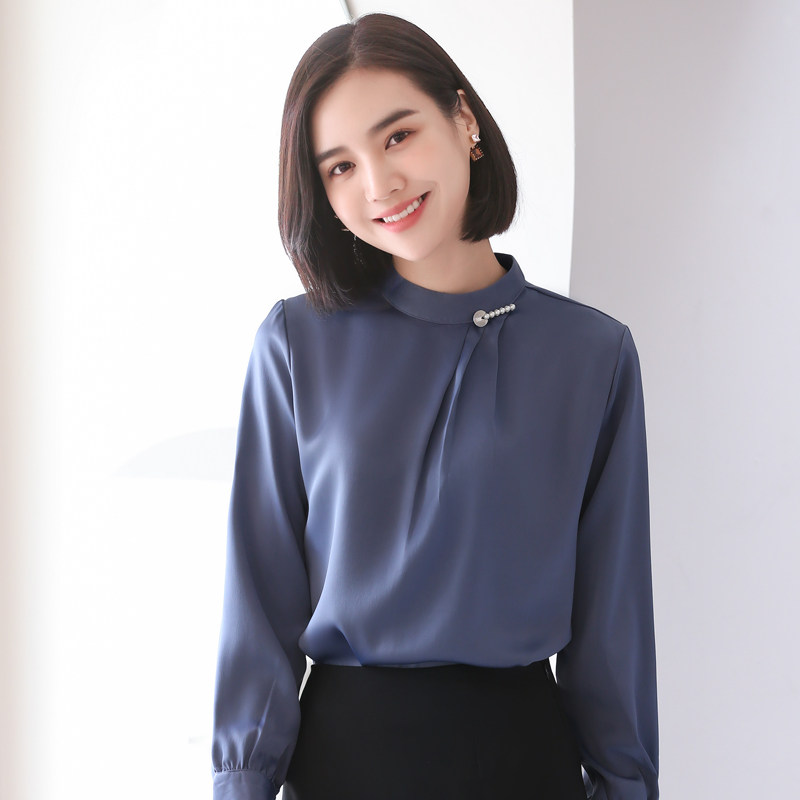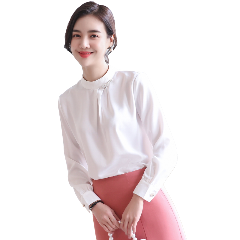 Chiffon neck shirt women long sleeve loose office design sense niche 2021 New temperament white shirt