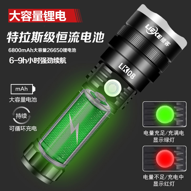 Hunter P70 strong light flashlight charging ultra-bright outdoor small portable long-range 26650 household multi-function xenon lamp