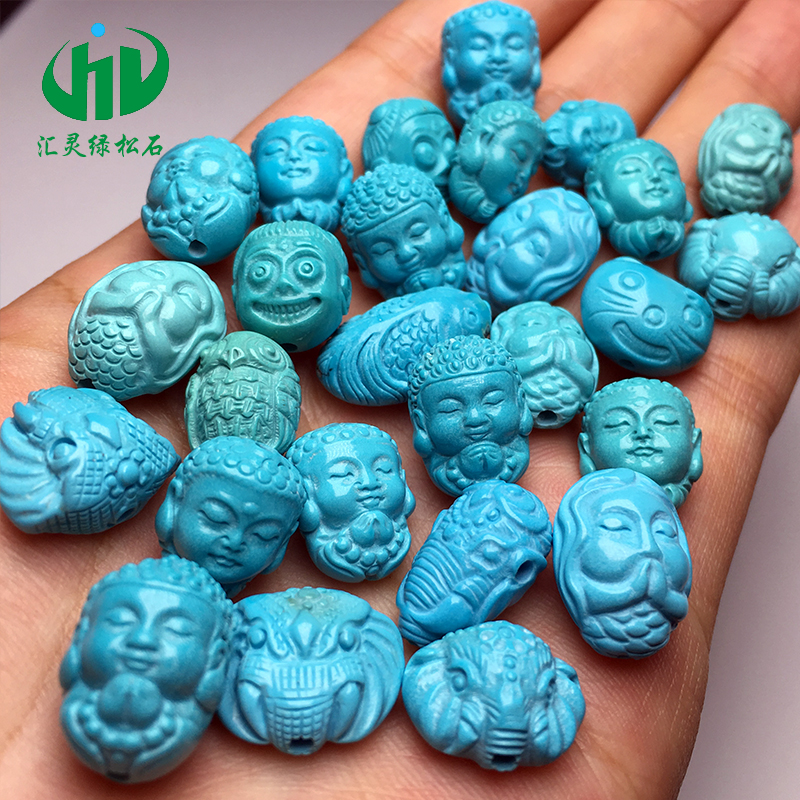 Shiyan original mine turquoise loose beads accessories high porcelain blue Buddha head pendant Maitreya Buddha laughing Buddha single bead hand string with beads