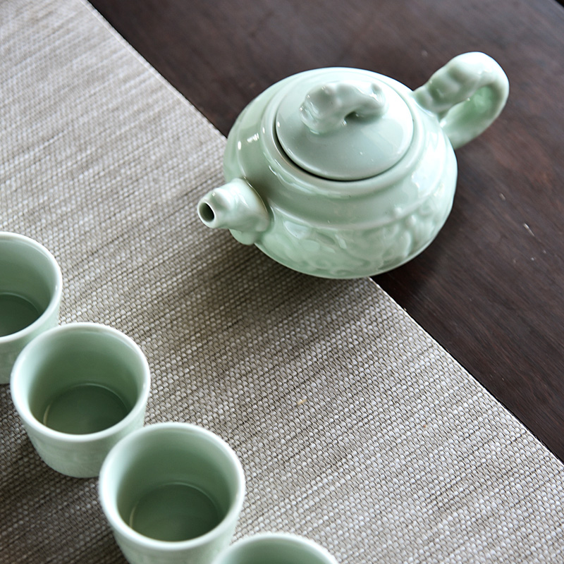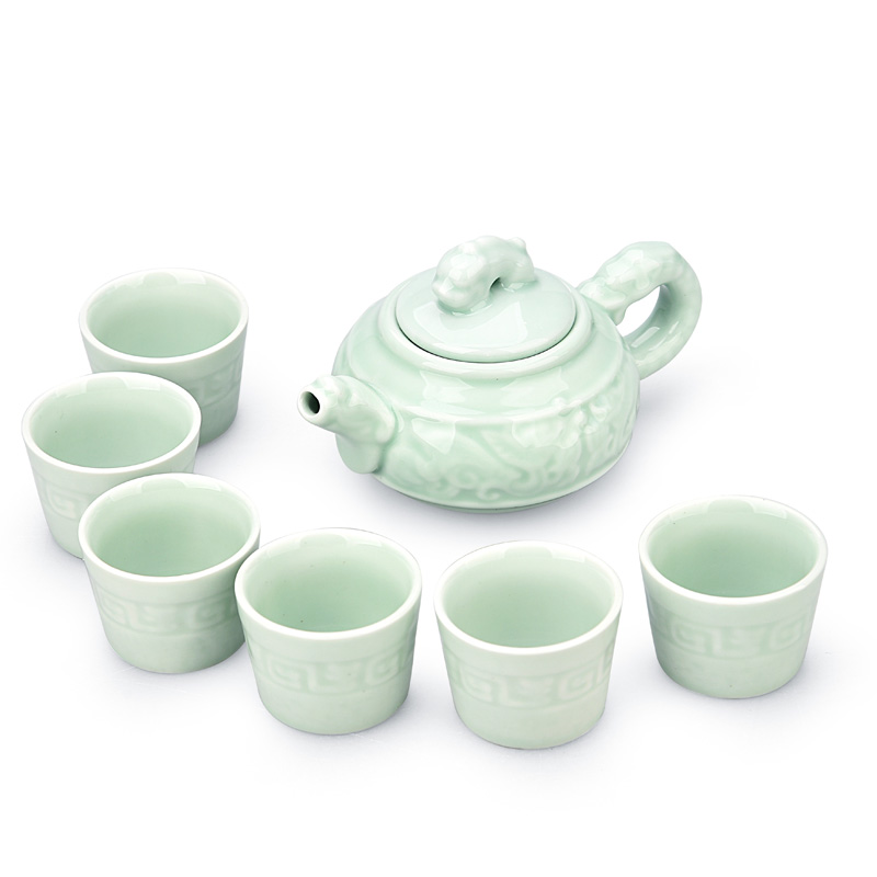 Celadon Wolong a pot of six cups 7 panlong firewood yellow tea set 7 panlong peacock blue tea set