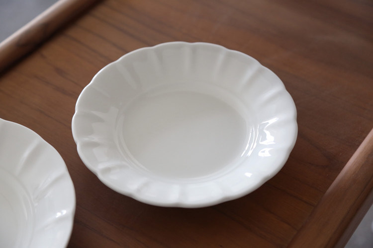 Lovelly net face ceramic petals embossed deep disc tray Sub-texture light and thin bone porcelain tray