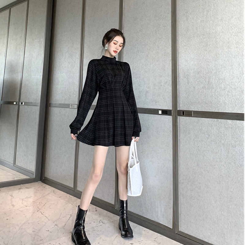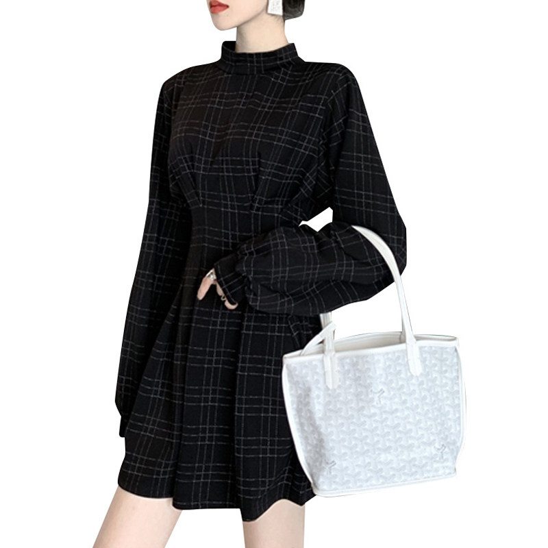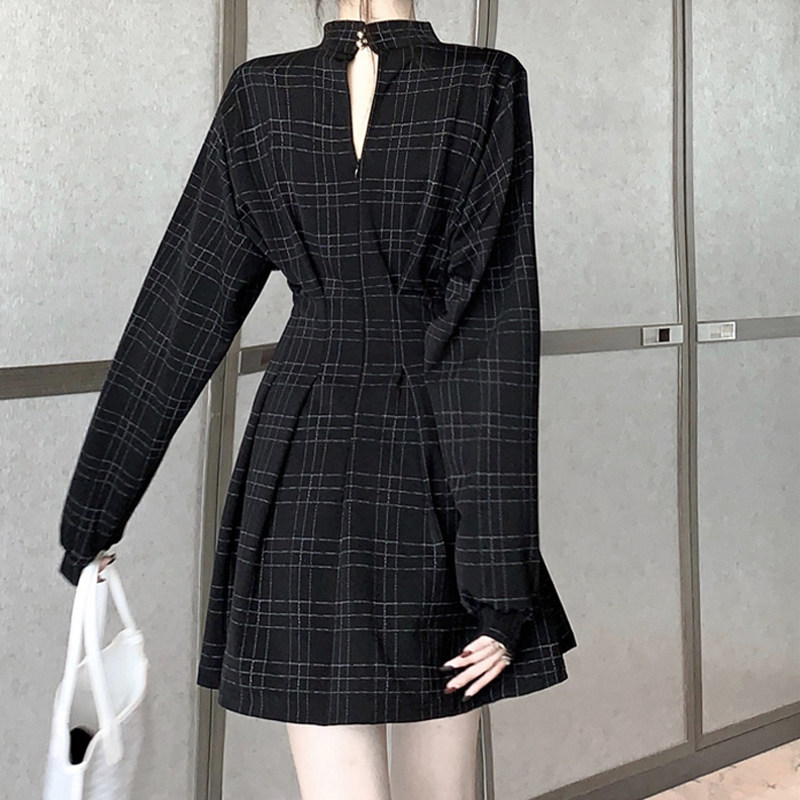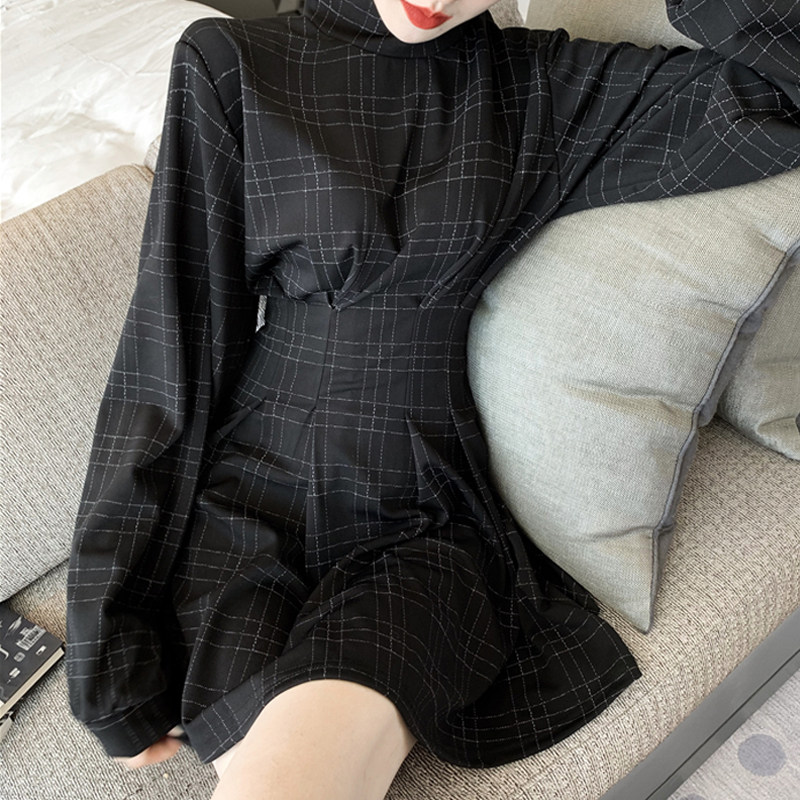 2022 spring and autumn new chiffon long-sleeved slim-fit mid-length version waist-length small black dress with a dress inside