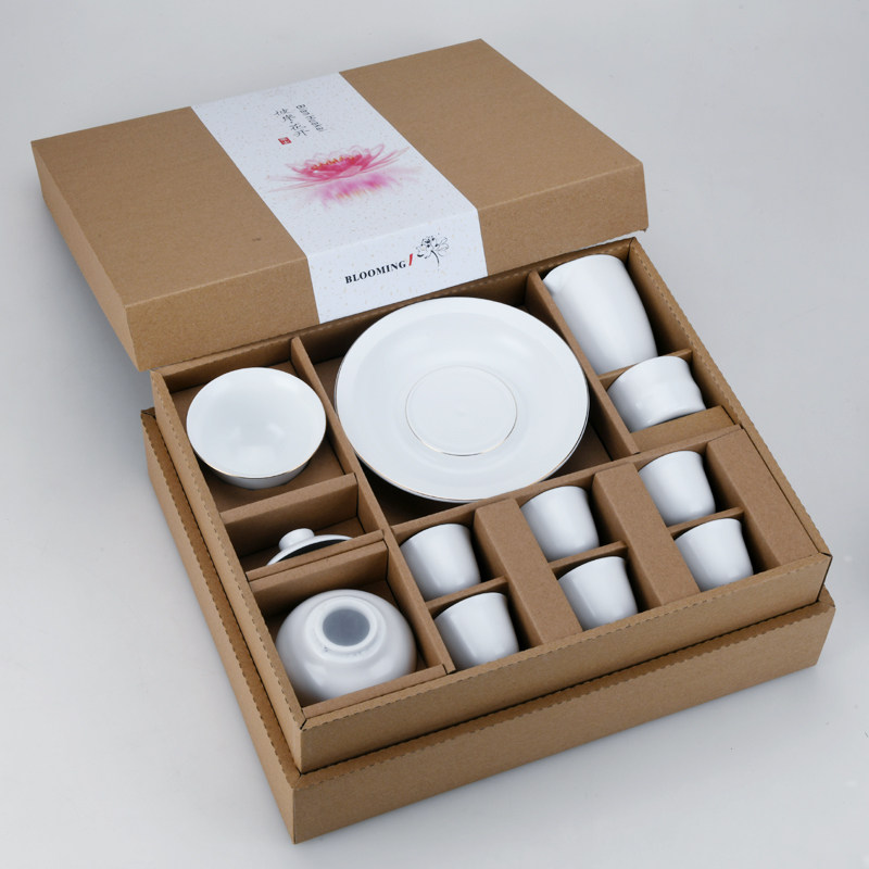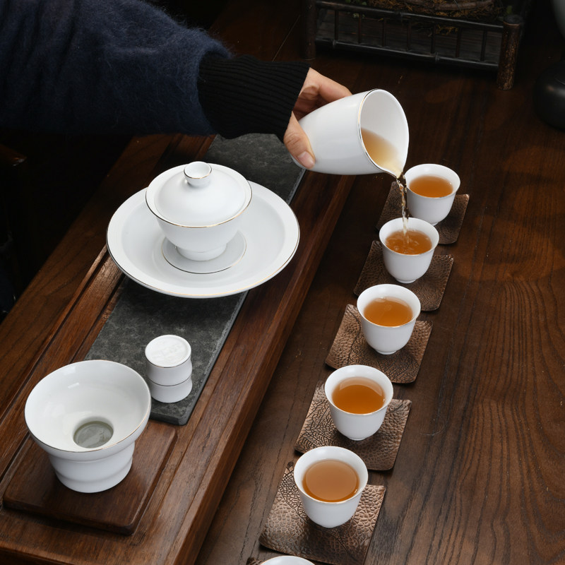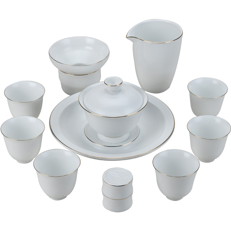 White Porcelain Tea Set Group Pure White White Porcelain Tea Set Group Blue Mouth White Porcelain Tea Set Group Fish Play White Porcelain Tea Set Group Shadow