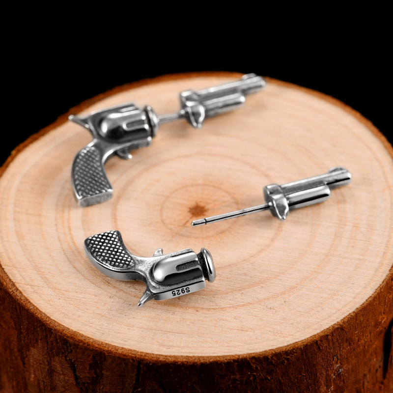 Rotai old silversmith 925 silver lukewarm wind ear pin net red men's singles only retro trend personality male boomers hip hop