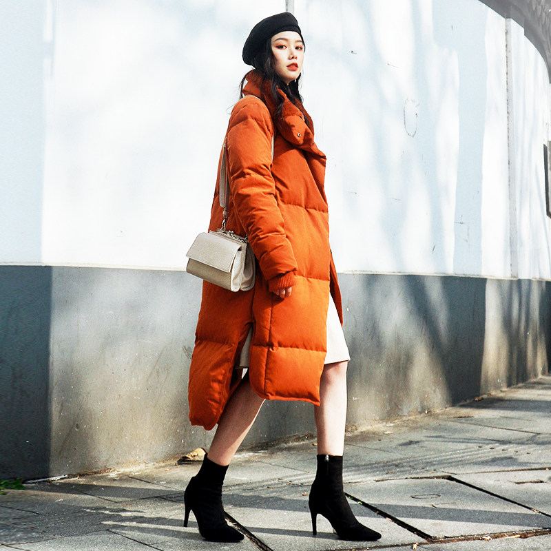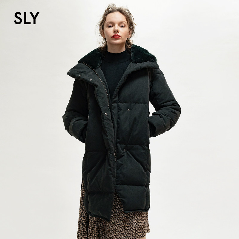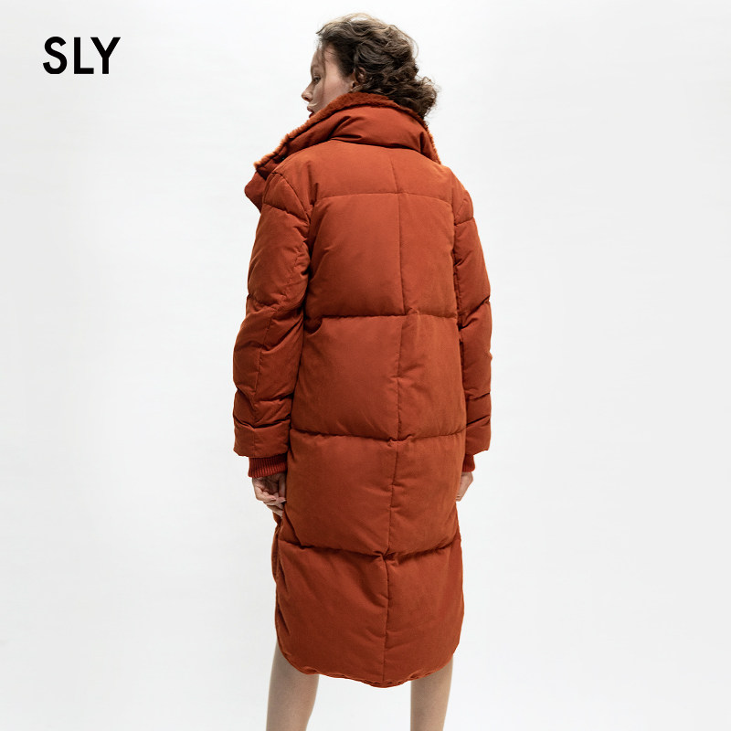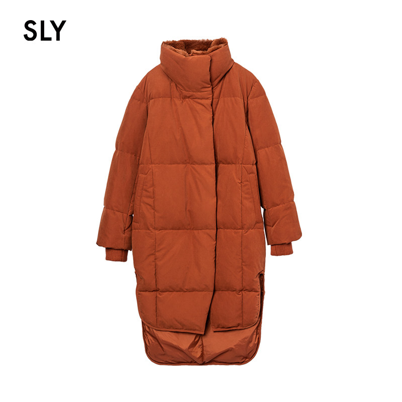 SLY winter new front short after long side fork casual loose long down jacket women 030CAW30-0280