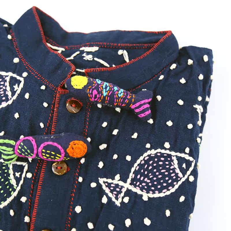 5 15 live-Thai handmade cloth art cotton thread colour tingle embroidered card woe childlike calf brooch