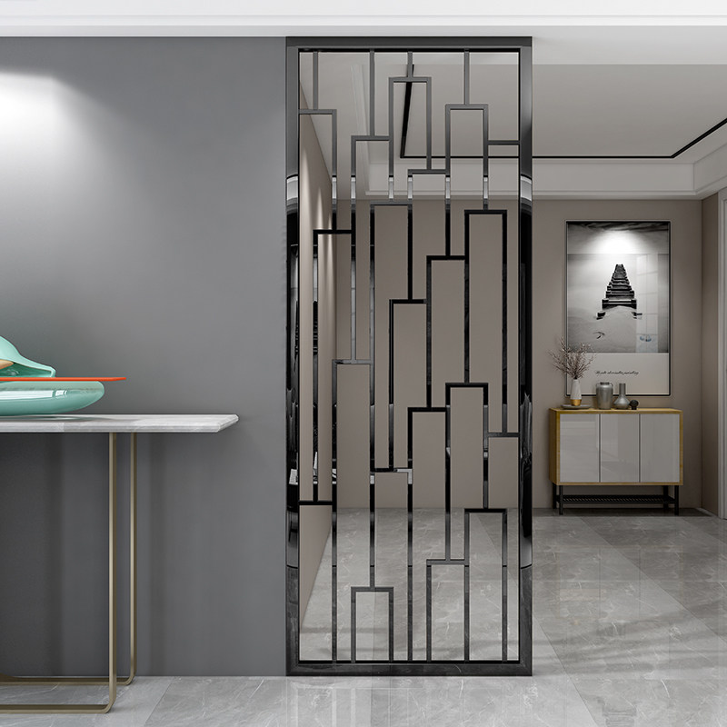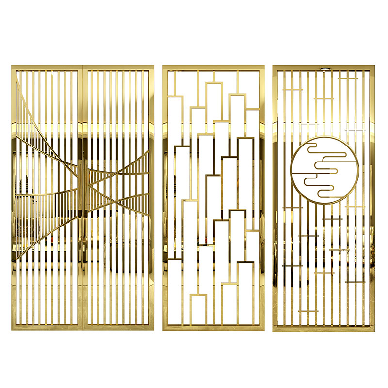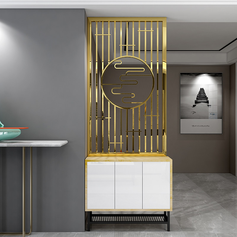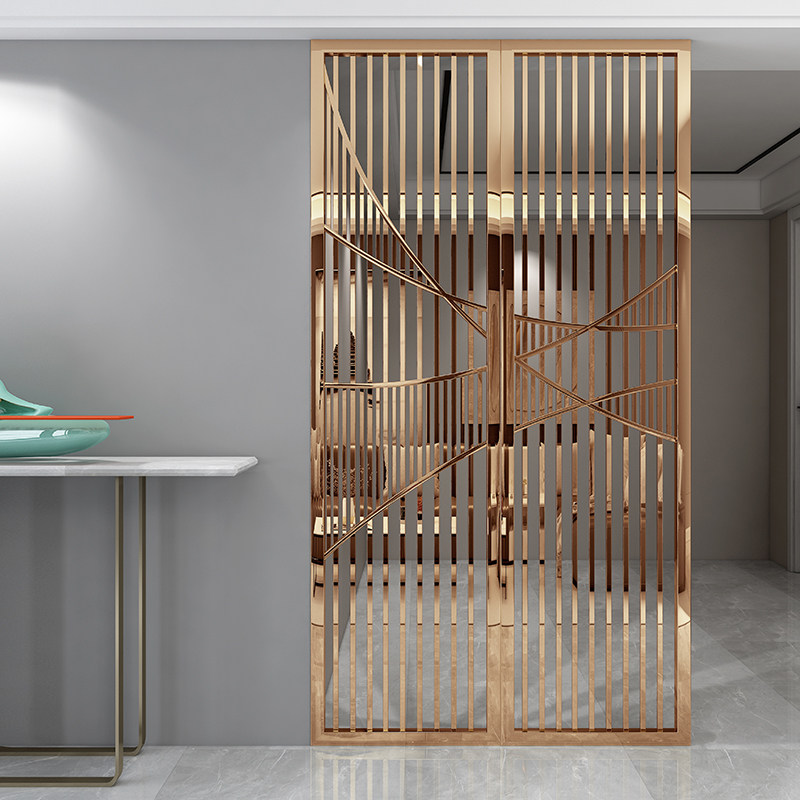 Nordic light luxury stainless steel screen partition hollow mesh red decorative metal titanium alloy into the home Xuanzhong style living room bedroom