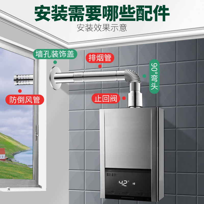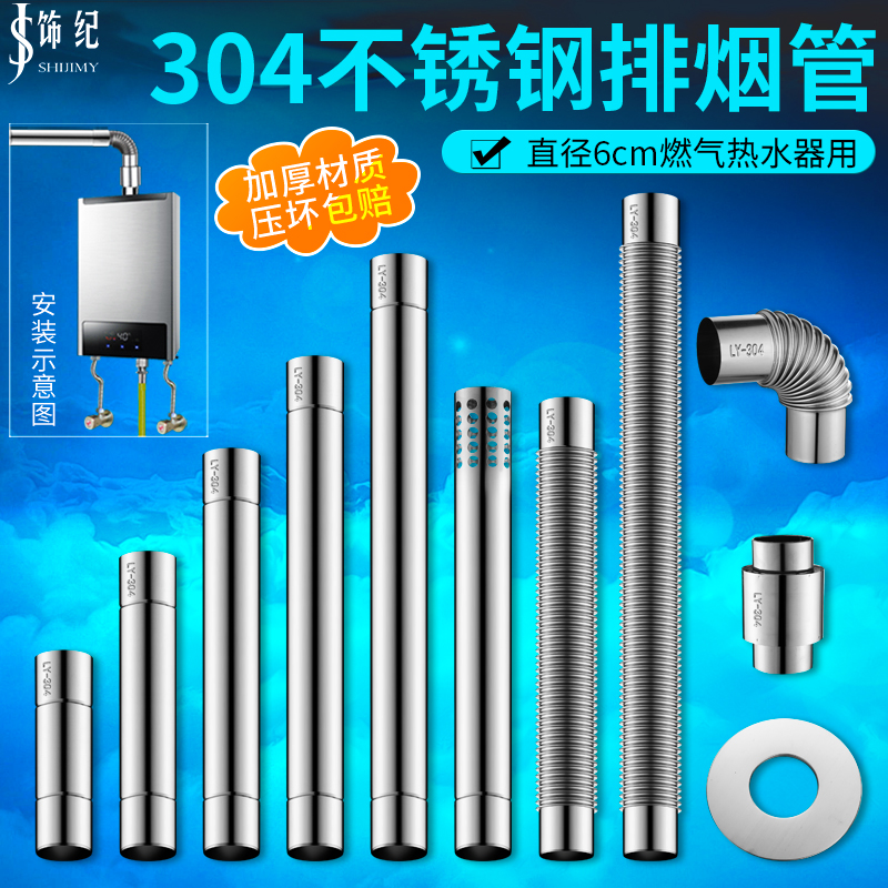 Water heater smoke exhaust pipe diameter 6cm lengthened thickening 304 stainless steel strong platoon type fitting gas exhaust pipe-Taobao