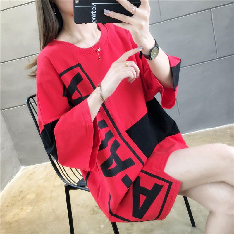 Gestational Maternity 2023 Summer Fashion models Han version Loose Short Sleeves Mid-Length T-Shirt Women Summer Dress 100 Hitch not to be Hooded Blouse-Taobao