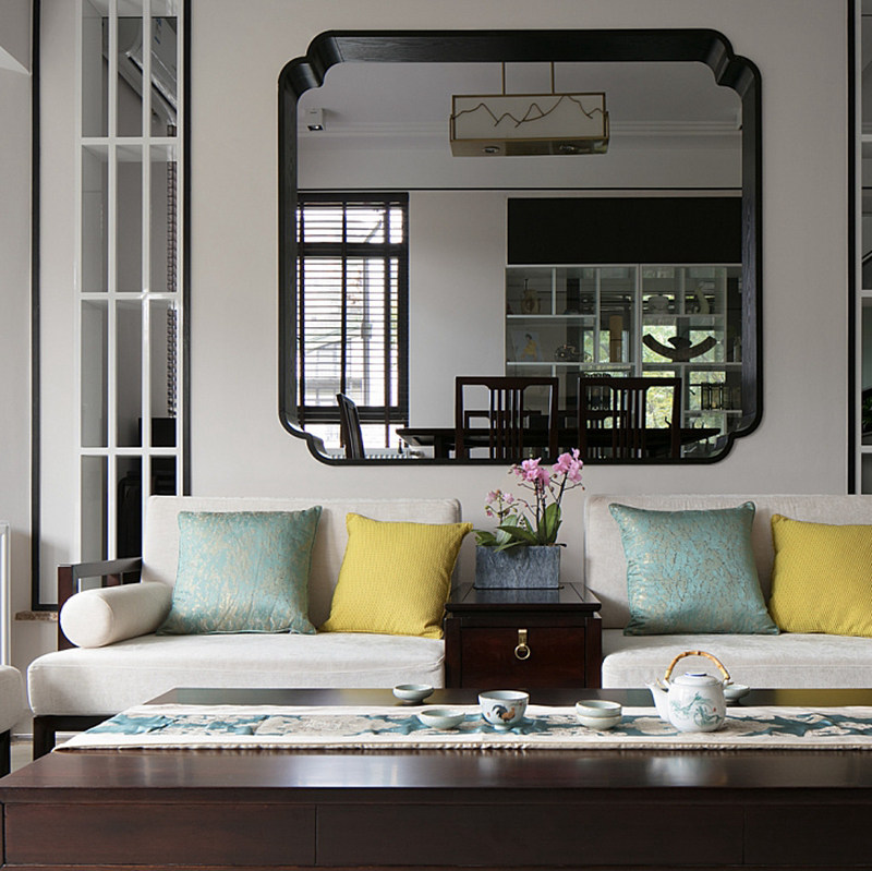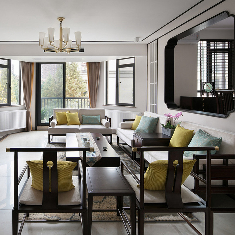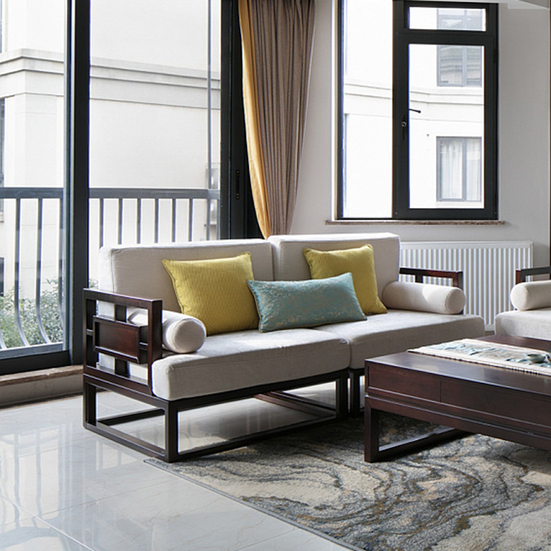 New Chinese-style solid wood sofa Modern Chinese-style living room self-assembly small apartment Zen-like model room Zen-like furniture customization