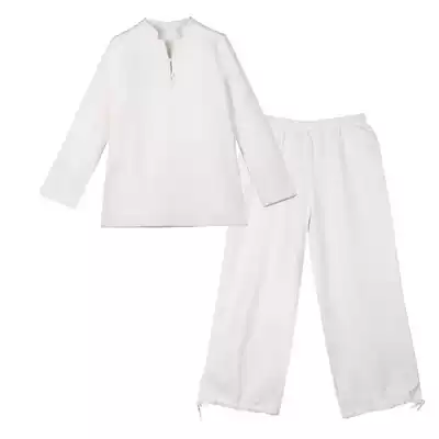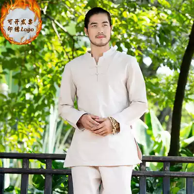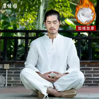Autumn and winter Chinese cotton and linen clothes for men and women suit plus velvet high-end health club Chinese medicine museum long sleeve work clothes customization