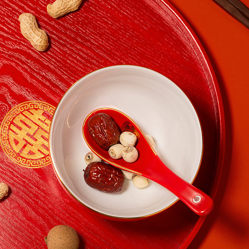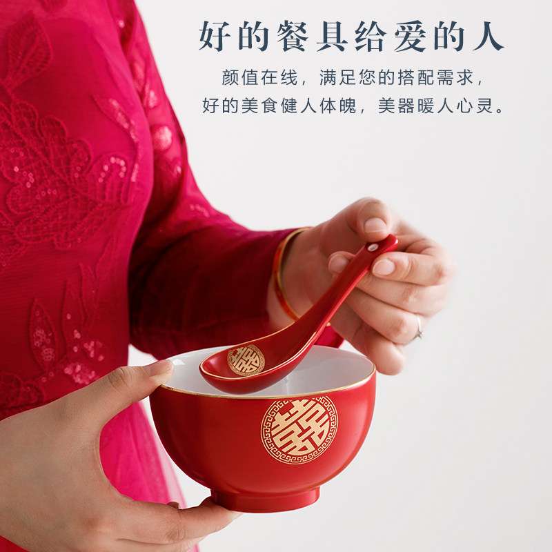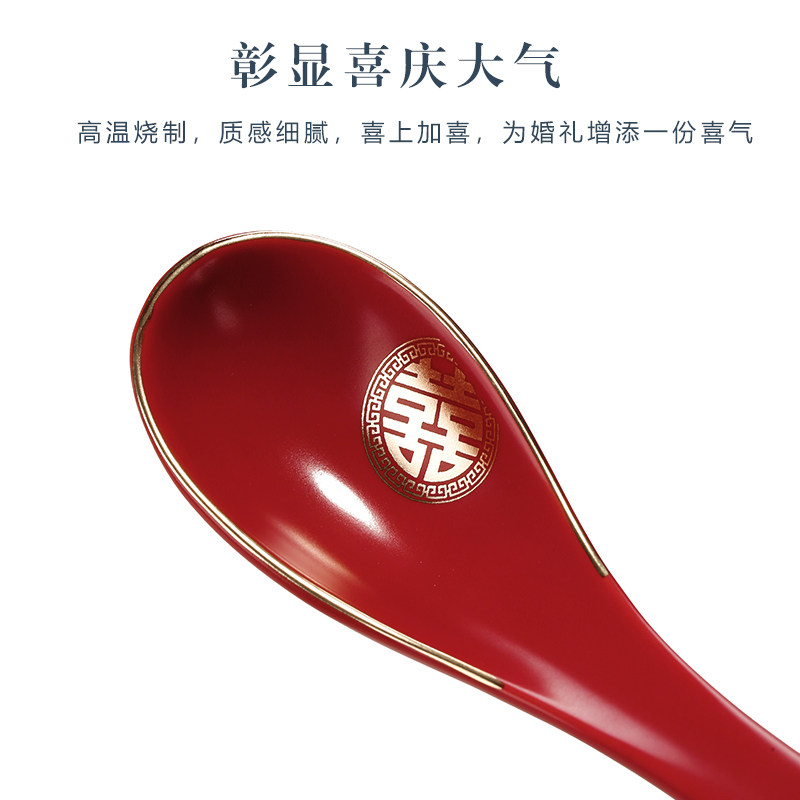 Han Red Gold Joyful Soup Spoon Wedding Home Soup Spoon Small Rice Spoon Red Tablespoon Spoon Joyful Wedding Celebration Items Ceramics