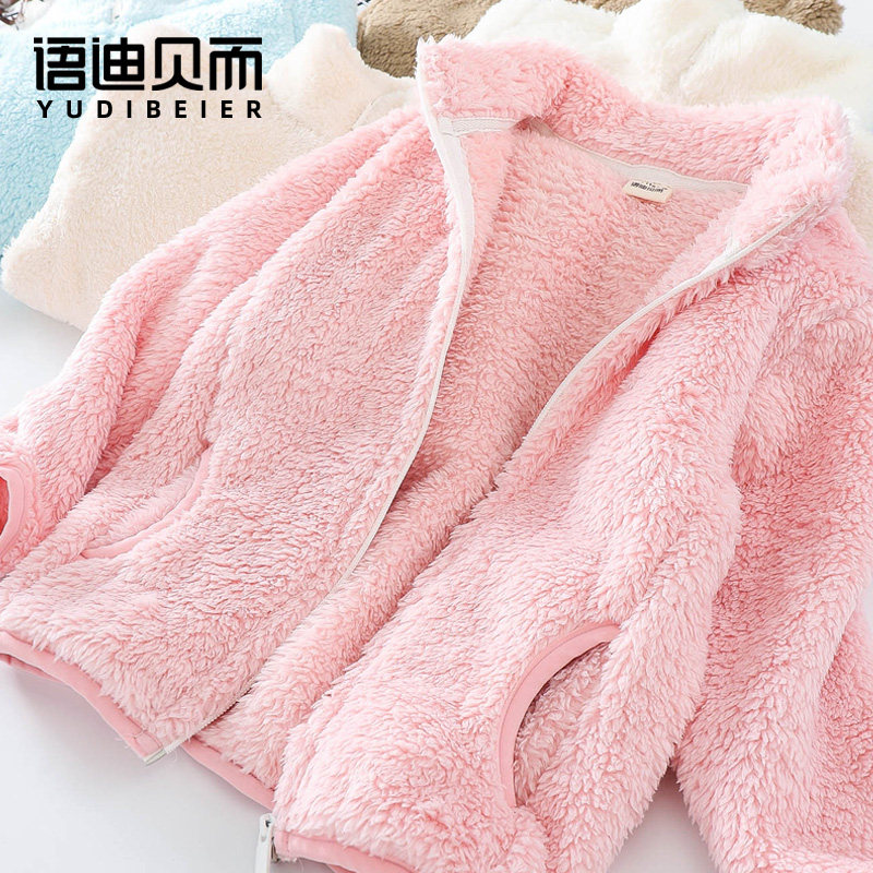 Children's long suede rocking grain suede jacket CUHK male and female child spring autumn winter thickened plush warm jacket foreign palate