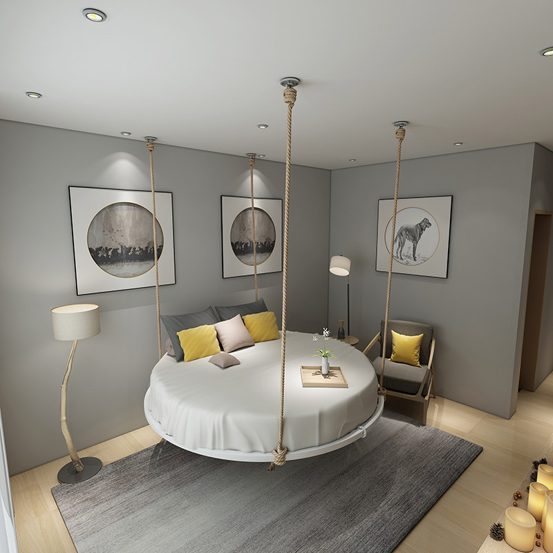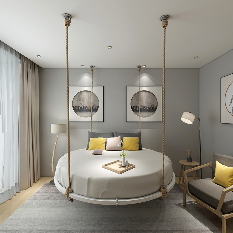 INS simple and modern iron bed B&B hotel Nordic home bedroom net red with the same creative design round hammock