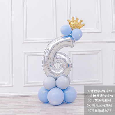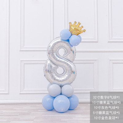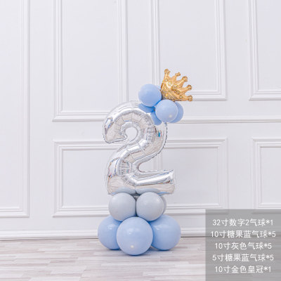 Birthday Digital Balloon Column Road Leading Blue Baby Full Moon 100 Days Decorate Children's Birthday Party Scene Arrangement