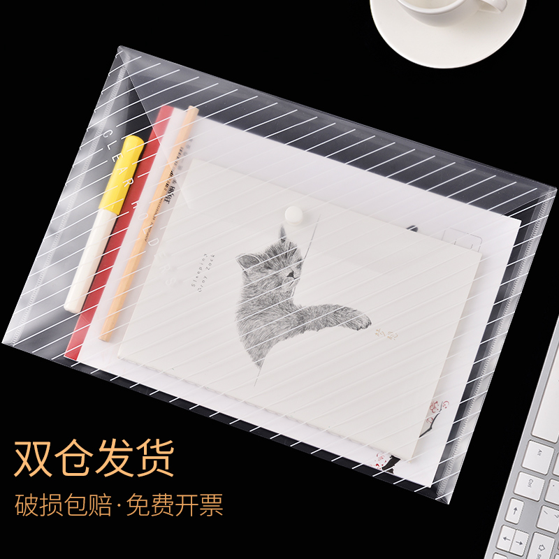 100 a4 File Bags Thickened Large Capacity Transparent Plastic Press Buckle Bag Students Use Cashier Bag Waterproof Archive Bag Bill Kit Business Office Department Store Stationery Bag Wholesale