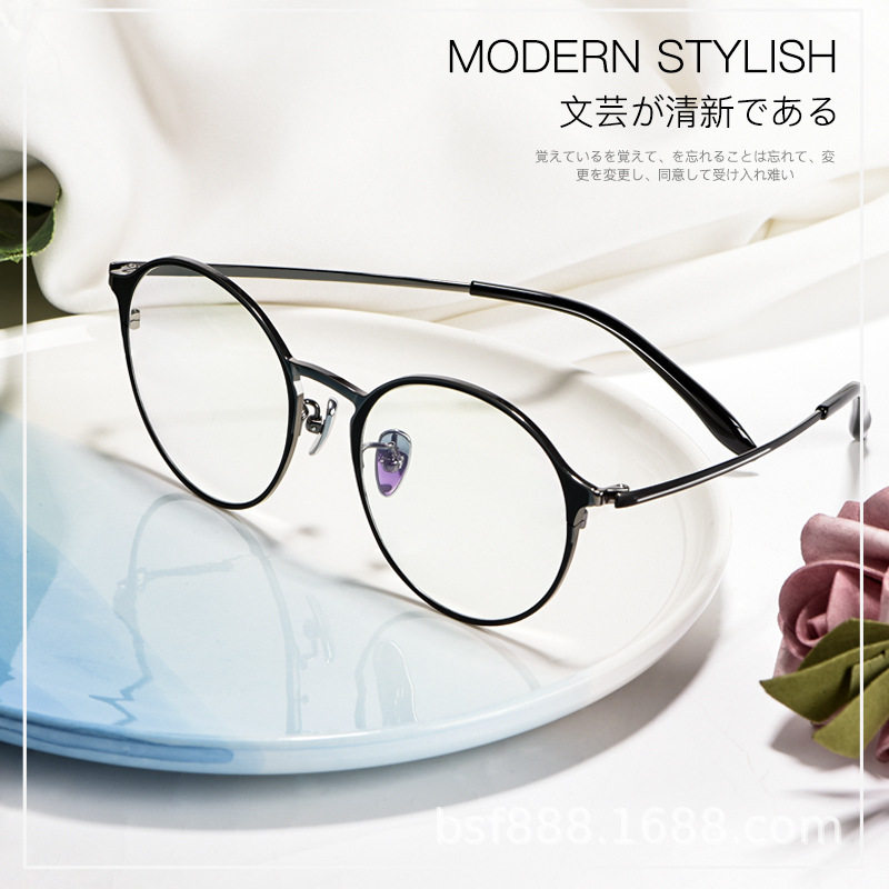 New pure titanium eye frames retro round glasses frame Shenzhen quality wave male and female flat mirror L1825