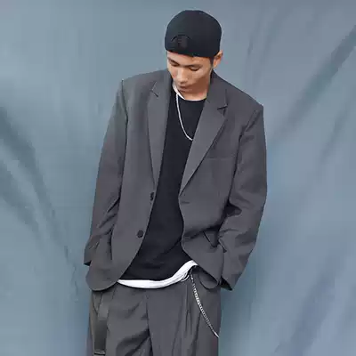 Lazy suit thug profile high sense fried street jacket gray male harbor style leisure trend yuppie suit Ruffian handsome