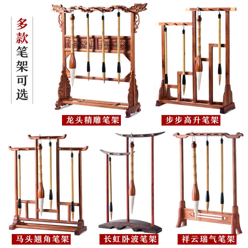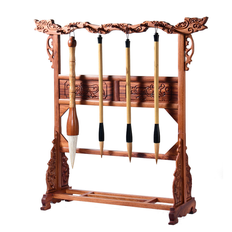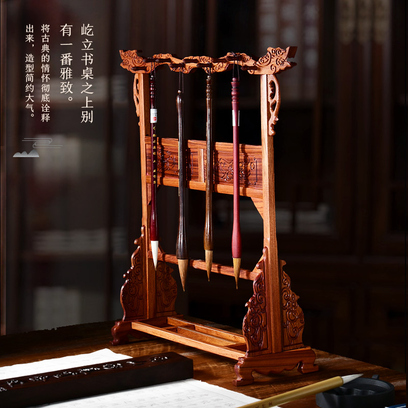 Chengzhutang large brush hanging pen holder pen hanging mahogany pen shelf creative calligraphy room four treasures brush pen holder solid wood new Chinese antique calligraphy supplies hanging ornament simple retro text square set