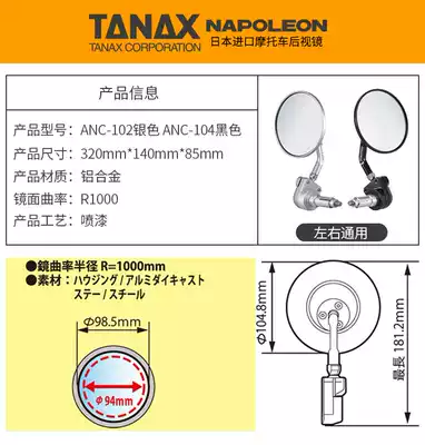 Japan TANAX locomotive modified horn handle plug retro large field of view rear mirror mirror ANC
