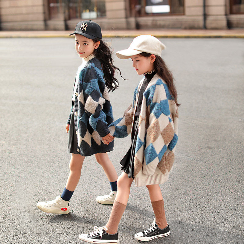 Big girls knitted cardigan coat 2022 new western style autumn clothes children's long version girls all-match sweater spring clothes