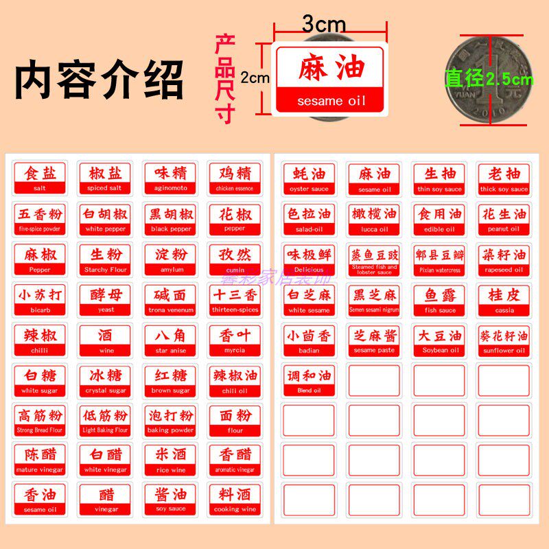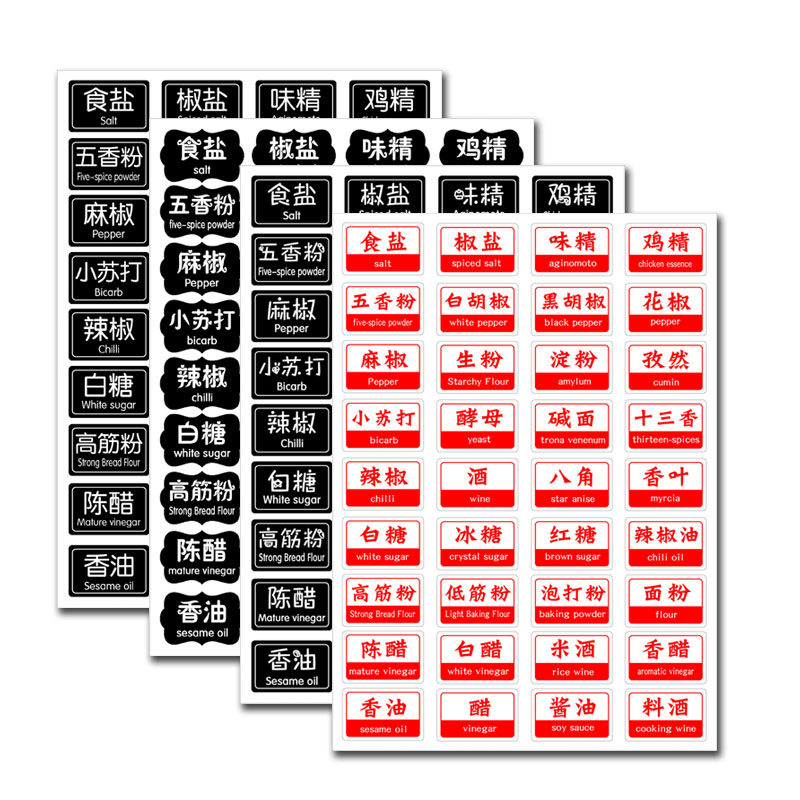Kitchen supplies label stickers waterproof and oil-proof seasoning stickers vinegar soy sauce seasoning bottle stickers household classification bottle stickers
